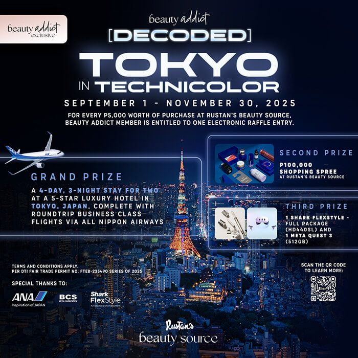 Up for grabs is a luxurious Tokyo getaway: a 4-day, 3-night stay for two at a 5-star hotel with business class flights from All Nippon Airways. The second prize offers a P100,000 shopping spree at Rustan’s Beauty Source, while the third features premium tech must-haves like the Shark FlexStyle Full Package (HD440SL) and a Meta Quest 3 (512 GB).