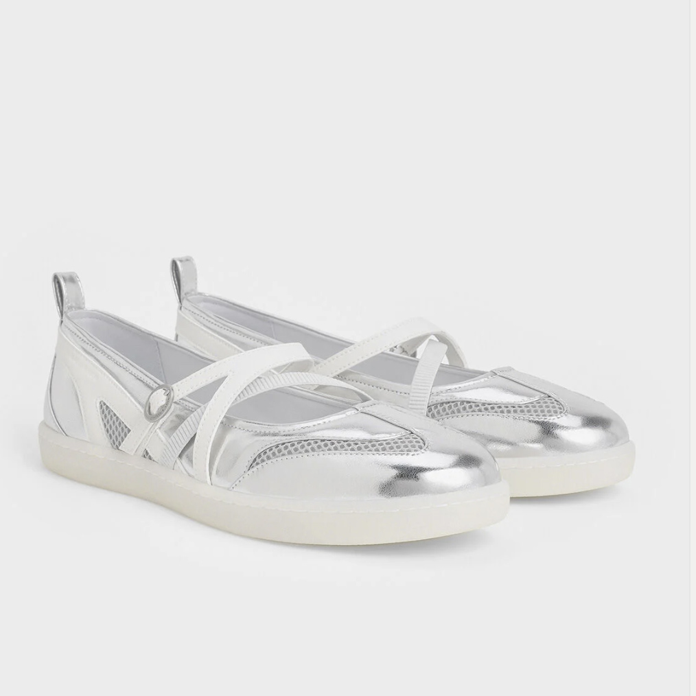 Charles & Keith Tiggy Metallic Mesh Two-Tone Ballet Sneakers
